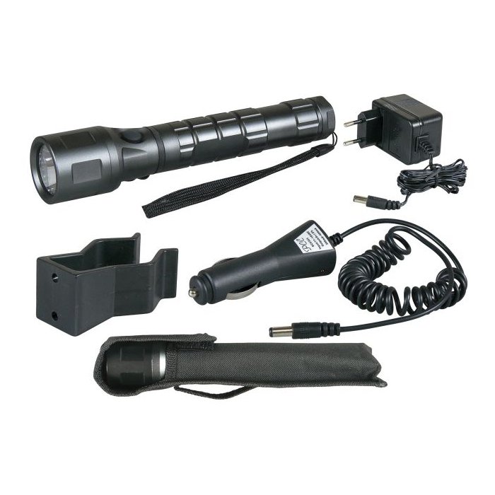 Kompaktowych rozmiarów Latarka ładowalna Emos LED 3W z zestawem akcesoriów.