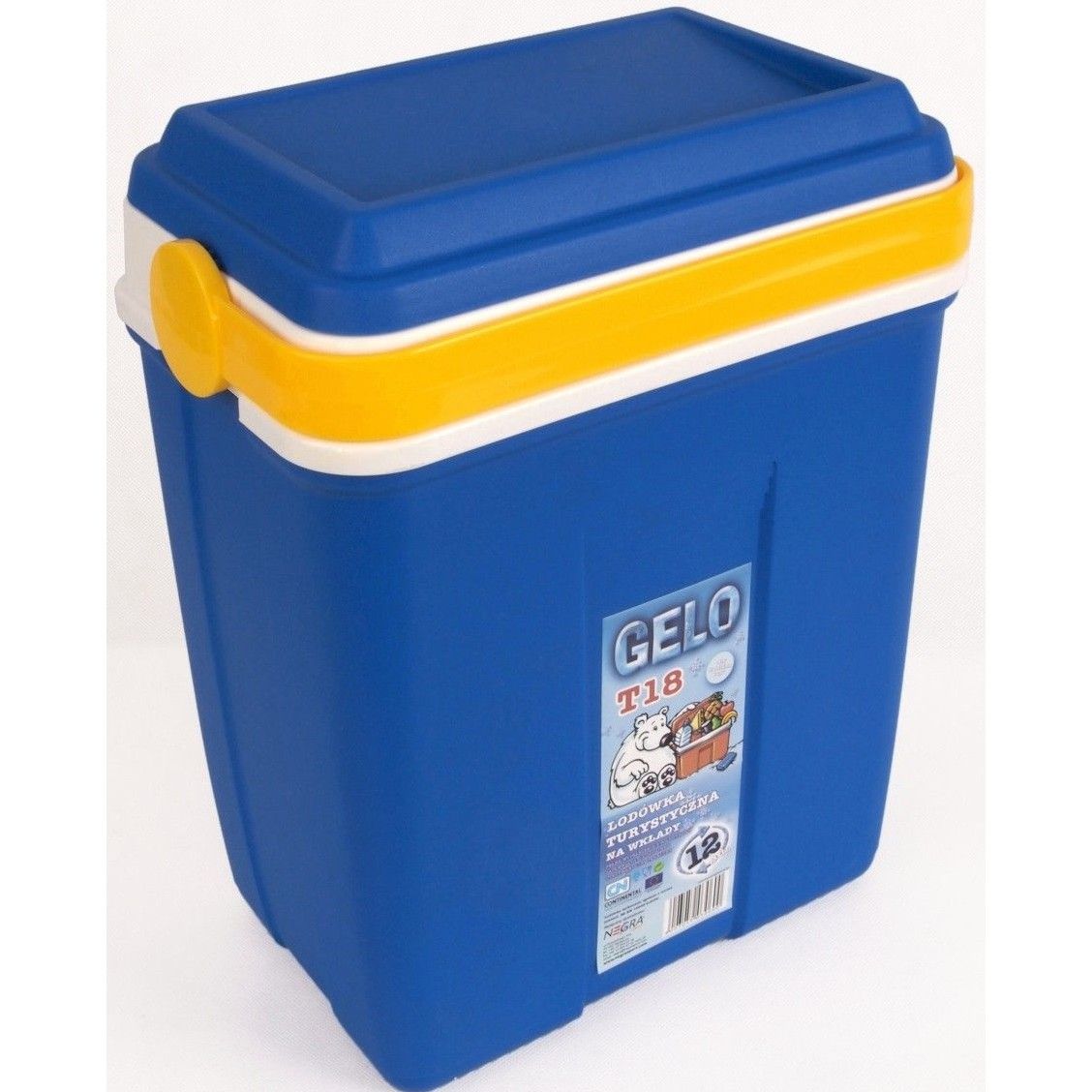 Lodówka GELO T18 jest idealnym pojemnikiem termicznym na piknik lub podczas campingów, biwaków, wypadów na plażę. Poręczna i lekka lodówka turystyczna na wkłady chłodzące. Posiada zdejmowaną pokrywę.